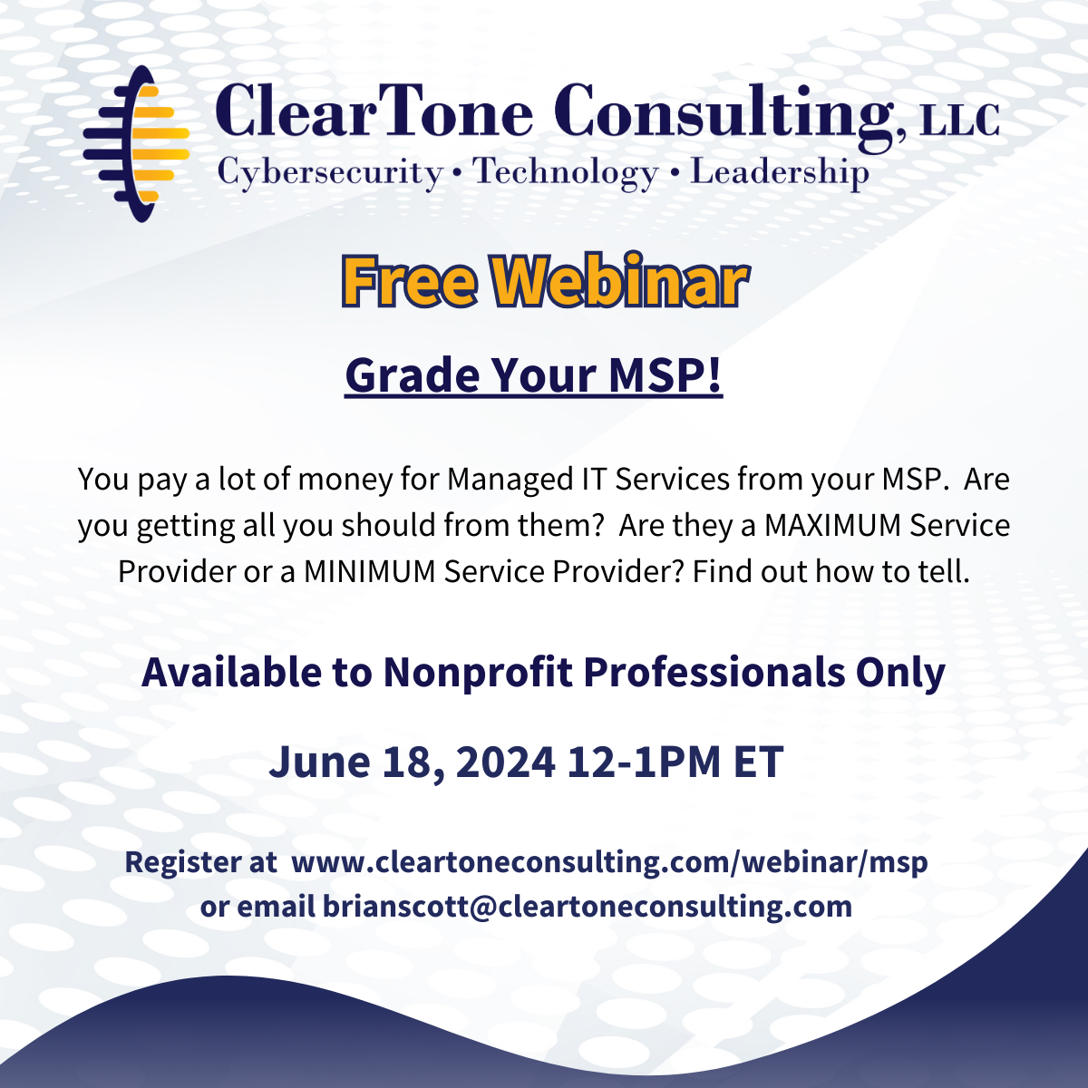 Join our upcoming webinar, "Grade Your MSP: Ensuring Your Nonprofit Receives Optimal Service," tailored specifically for leaders in the association and nonprofit sectors. This session will guide you through evaluating whether your Managed Service Provider (MSP) is a Minimum Service Provider barely meeting your needs, or a Maximum Service Provider enhancing your organizational efficiency and security.